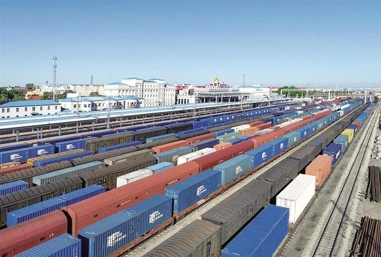满洲里中俄跨境公铁联运。