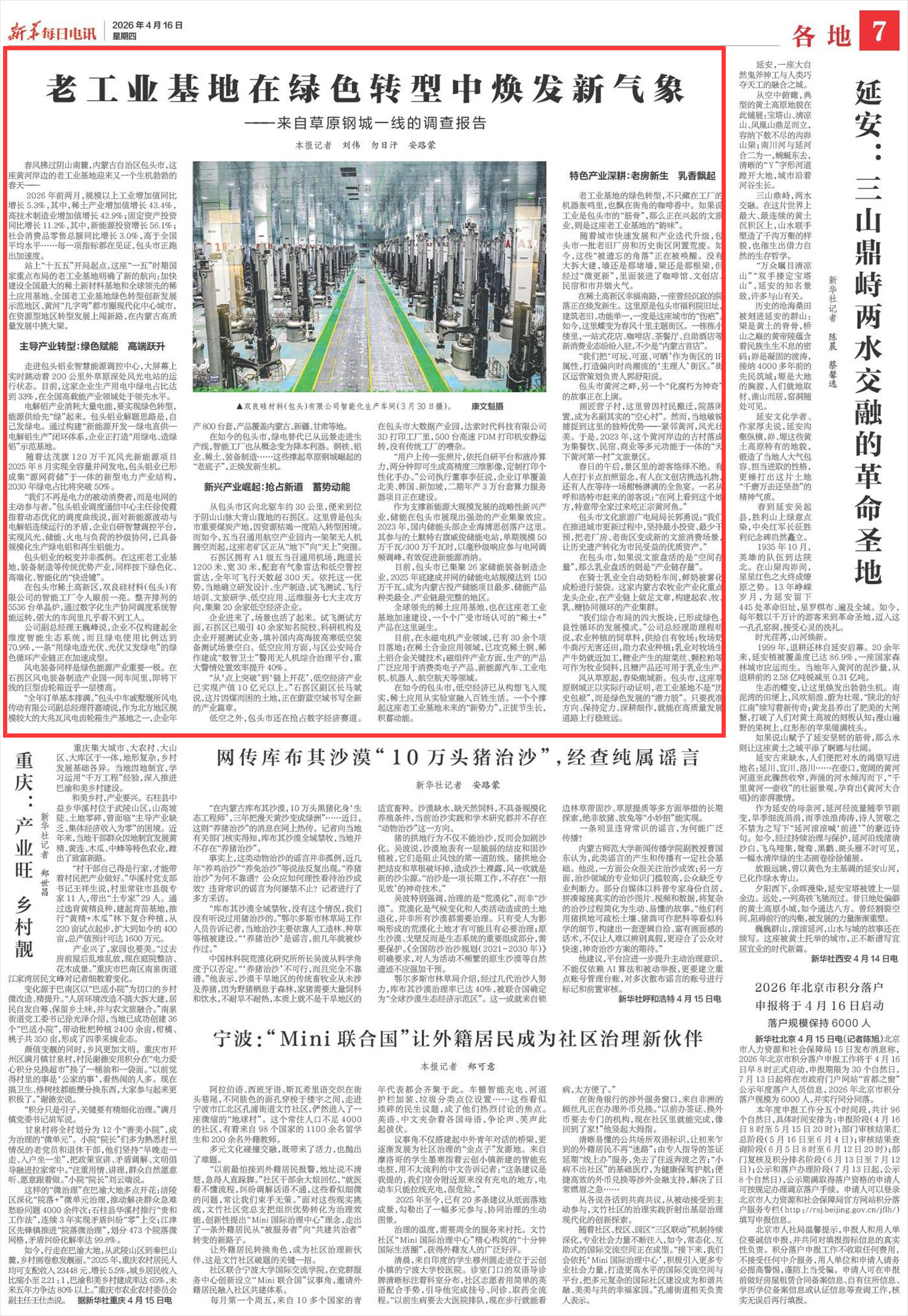 2026年4月16日《新华每日电讯》第7版刊发了题为《老工业基地在绿色转型中焕发新气象——来自草原钢城一线的调查报告》的文章,报道了内蒙古自治区包头市,这座黄河岸边的老工业基地迎来又一个生机勃勃的春天——站上“十五五”开局起点,这座“一五”时期国家重点布局的老工业基地明确了新的航向:加快建设全国最大的稀土新材料基地和全球领先的稀土应用基地、全国老工业基地绿色转型创新发展示范地区、黄河“几字弯”都市圈现代化中心城市,在资源型地区转型发展上闯新路,在内蒙古高质量发展中挑大梁。
