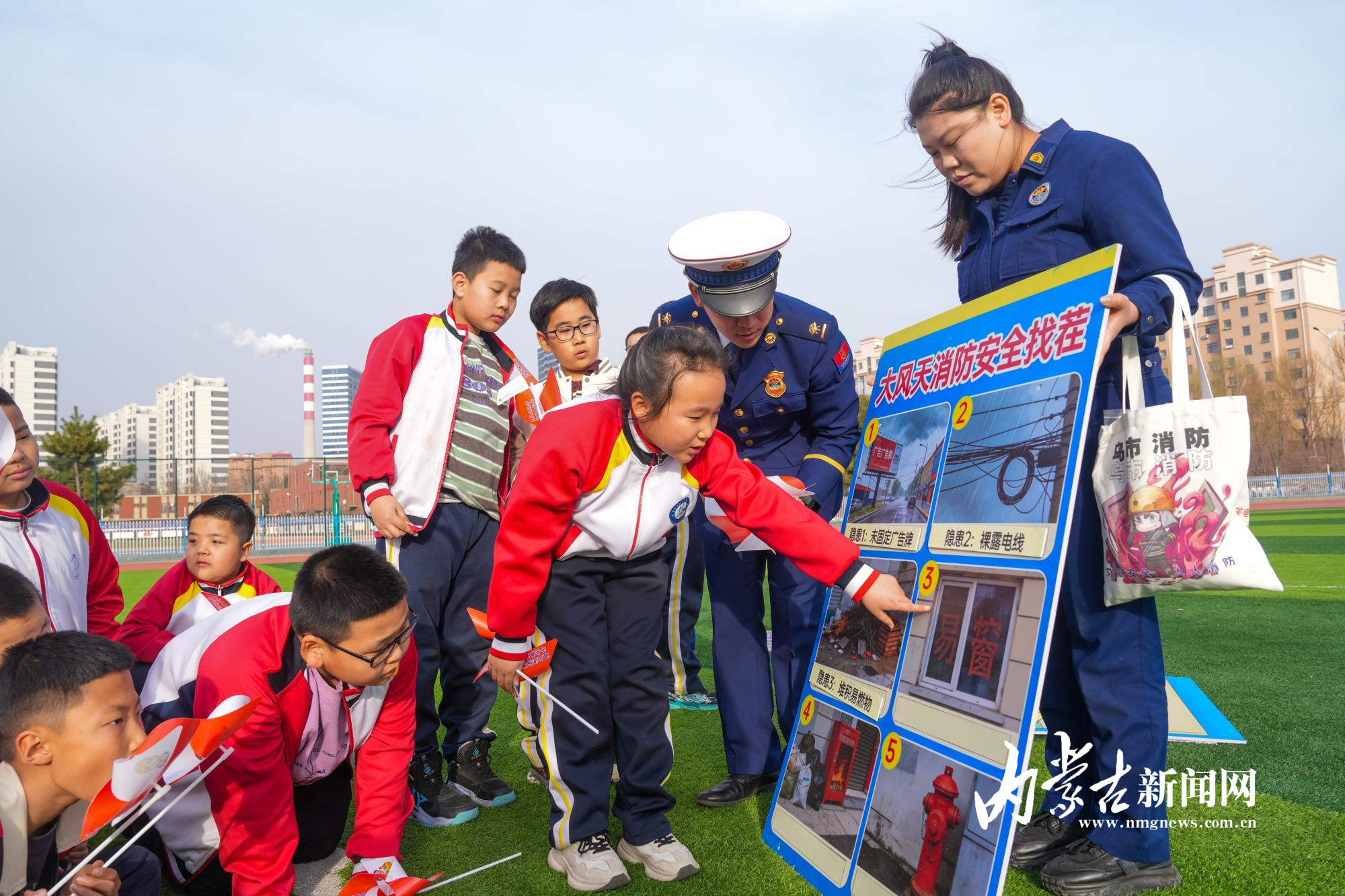 本网讯(草原云·内蒙古新闻网记者 马丽侠)4月16日,兴安盟乌兰浩特市消防救援大队以“风车转动 平安随行”为主题,为乌兰浩特市合展第一小学的师生们带来了一堂别开生面的消防安全户外拓展社团课。针对近期大风天气频发、火灾风险增高的实际情况,该大队打破传统课堂的局限,创新采用“场景宣讲+实操体验+机智问答”三位一体的模式,将安全知识从“纸上”落到“身边”,让这堂户外课既生动又扎实。