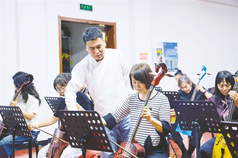 4月19日,在兴安盟突泉县第四期马头琴公益培训班上,马头琴爱好者跟随乌兰牧骑队员学习马头琴。突泉县马头琴公益培训班自2025年启动以来,已累计培训学员近百人,成为传承马头琴技艺、丰富群众精神文化生活的重要平台。草原云·内蒙古新闻网记者 王磊 摄