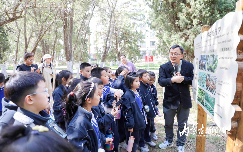 4月22日,呼和浩特万锦小学一年级10班的学生们在呼和浩特树木园和内蒙古林科院,开展“小小研学家”主题研学活动,同学们近距离观察植物形态,学习生态知识,在行走中收获成长。摄影/草原云·内蒙古新闻网首席记者 牛天甲