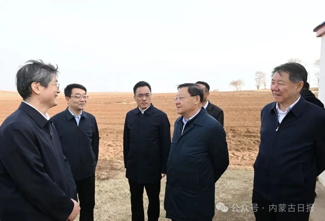 4月21日,自治区党委书记、人大常委会主任王伟中来到武川县可可以力更镇天力木图村,步入田间地头,详细了解高标准农田建设有关情况。草原云·内蒙古新闻网记者 马建兵 摄