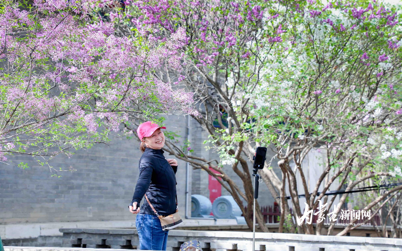 4月24日,游客慕名来到呼和浩特博物院将军衙署博物馆观赏丁香花。据了解,丁香花是呼和浩特市市花,其中四株从北京皇家园林移植而来的丁香树至今已有188年树龄。近日,百年丁香迎来盛花期,繁花满枝、香气馥郁,吸引众多市民游客前来打卡赏景。摄影/草原云·内蒙古新闻网首席记者 牛天甲