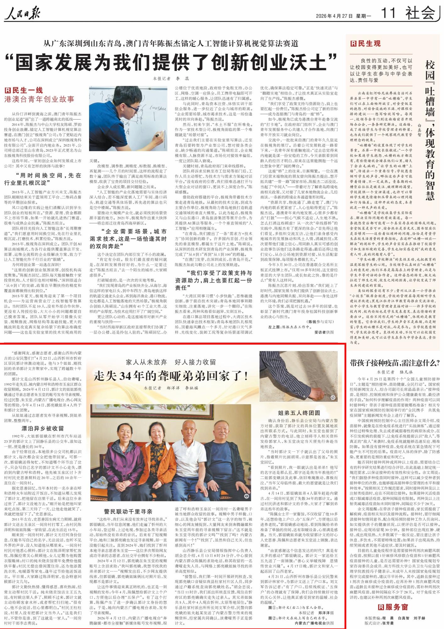 2026年4月27日,《人民日报》第11版刊发题为《家人从未放弃 好人接力收留 走失34年的聋哑弟弟回家了!》的文章,讲述了郭计文是山西忻州静乐县人,自幼聋哑。1992年走失后,被内蒙古呼和浩特市玉泉区群众收留照顾。2024年4月12日,郭计文的姐姐郭亮娥通过寻亲志愿者朱玉堂的账号发布寻亲视频,经过民警、朱玉堂、内蒙古广播电视台、热心网友等的帮助,今年4月14日,郭亮娥姐弟4人终于和郭计文团聚。