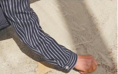 郭计文在地上写自己的名字。内蒙古广播电视台供图
