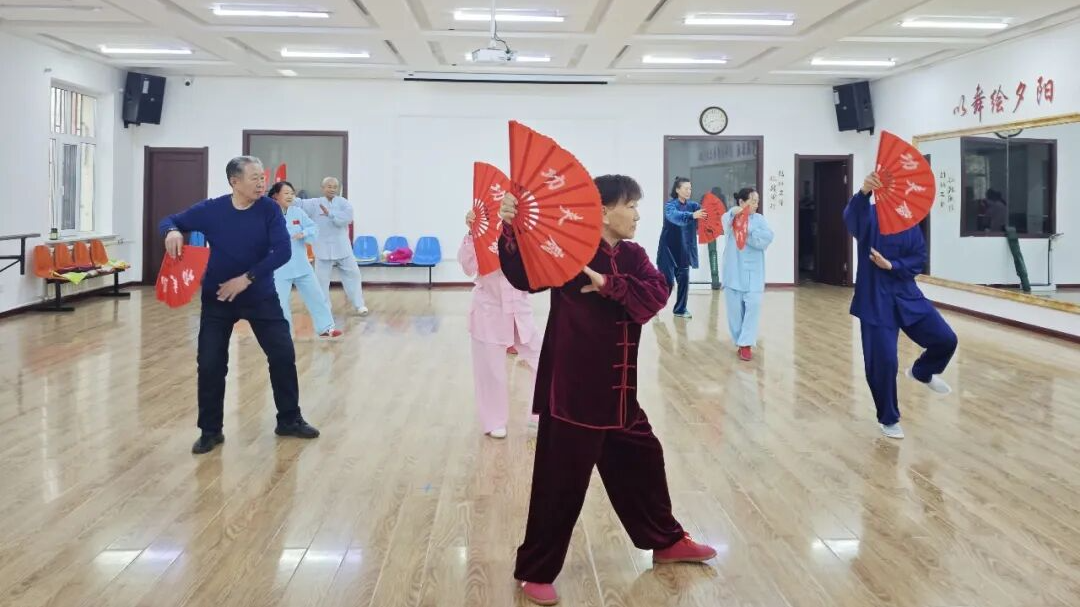 学员们的获得感,离不开课程的科学设置。老年大学开设的课程,并非简单“凑热闹”,而是充分考虑了老年人的身心特点。太极拳课便是其中最具代表性的课程之一。每日清晨,太极拳班的学员们准时集合,在老师的带领下舒展身姿。他们先是打上一套行云流水的太极拳,随后挥舞起手中的太极剑,剑随身走,刚柔并济。最后,伴着明快的节奏,一套太极扇子舞收束全场,老人们吐纳自如、身形稳健,一招一式都透着精气神。